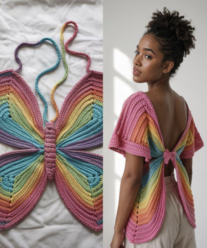 Introduction: Crochet clothing is back in style, and few pieces make a statement like the Butterfly Top. This gorgeous top, shaped like butterfly wings and bursting with rainbow colors, is perfect for summer festivals, beach outings, or simply showing off your vibrant personality.